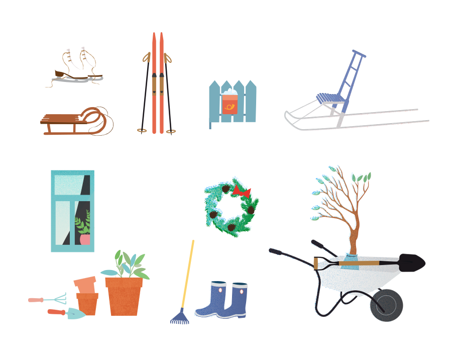 Mainostoimisto Siberia ja Medifamilia lähestyivät minua hauskalla taloprojektilla. Medifamilian www-sivuille haluttiin kylä, jonka talot toimisivat myös sivuston päänavigaationa. Kuvissa tapahtuu pieniä muutoksia vuodenaikojen mukaan – kylä elää ja kehittyy Medifamilian palvelujen mukana. Talojen lisäksi tein pieniä kuvituskuvia, joita voidaan käyttää yrityksen markkinointimateriaaleissa.